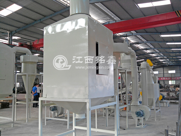設(shè)備采取了干式破碎、粉碎,使廢舊電路板成為金屬和樹脂纖維末混合物,然后通過高壓靜電分離器將金屬與樹脂等非金屬分離的工藝路線。設(shè)備優(yōu)點,噪音小、無需水、無粉塵污染、節(jié)約動力,節(jié)約人力、絕無廢棄物,金屬及非金屬99%充分回收利用。為防止加工過程中的粉塵污染,設(shè)備采用三合一除塵裝置,除塵裝置共有三級除塵:旋風除塵、布袋除塵和空氣凈化器除塵,有效地解決了粉塵污染問題,各項指標均達國家標準。